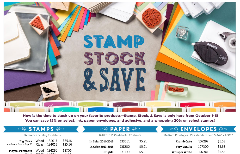 Stamp, stock and save begins October 1! Help Stampin' Up! celebrate this year's World Cardmaking Day by taking advantage of our 15% off sale on select ink, paper, envelopes, and […]