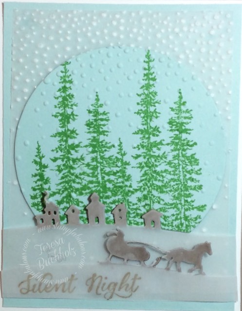 While I was at the SU convention I was able to order items from the new Holiday Catalog. It all arrived yesterday and I was a bit overwhelmed. It is so early for Christmas, but I know several of you are already planning your Christmas cards. I couldn't decide which stamp set to use so I combined two and some framelits and here you have my first Christmas card!